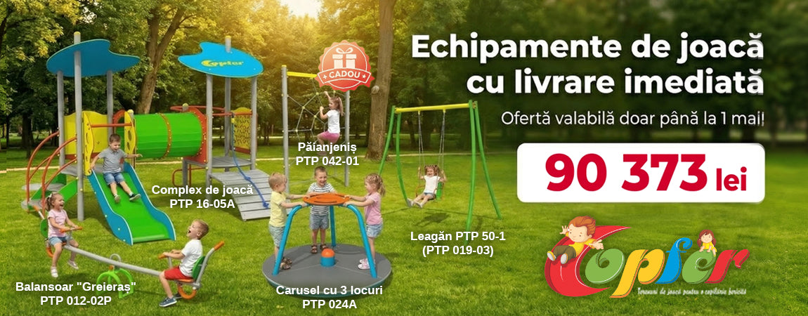 Peste 1500 terenuri de joacă instalate în Moldova și România. Produse certificate conform standardelor EN 1176 & EN 16630.