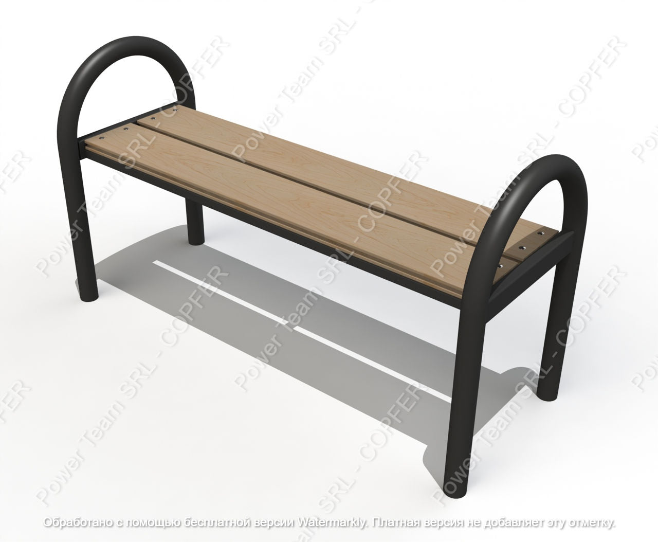 Confectionat din 2 profile de lemn compozit cu structura (Wood polimer compozit), profilul de deasupra va fi cu unghiurile rotunjite la 45 grade, grosime nu mai putin de 25 mm, latime- nu mai putin de 150 mm, culoarea nisipului, rezistent la factorilor atmosferici (umiditate, UV, regimuri tranzitorii inghet-dizghet), placa de lemn compozit va fi cu baza goala cu grosimea marginilor de minim 6 mm. Caracasa bancii va fi realizata din teava de otel cu diametrul de minim 48 mm.
