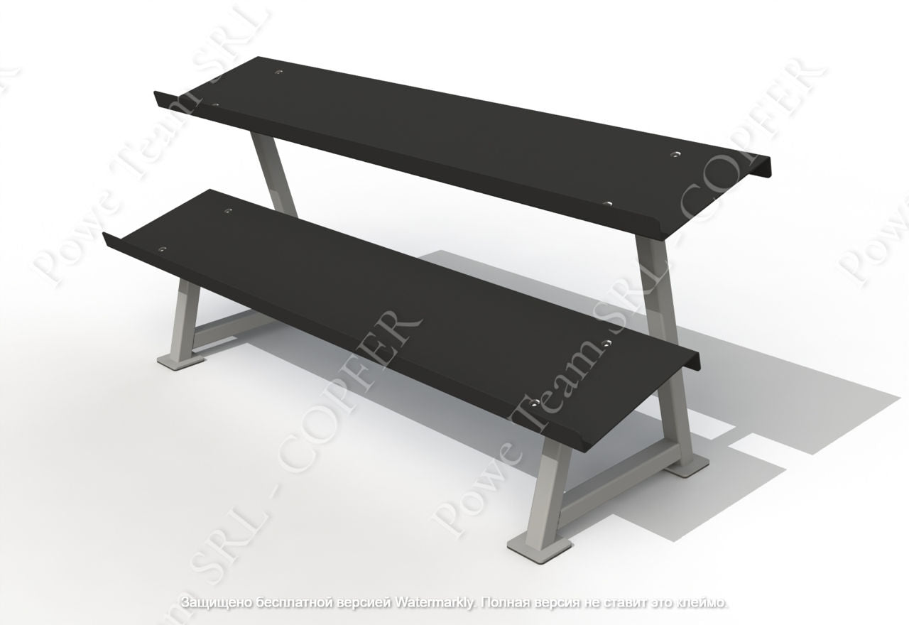 soluția ideală pentru organizarea spațiului în сentre de fitness: sistematizarea echipamentul și menținerea ordinei. Rafturile sunt instalate sub un unghi optim de înclinare care împiedică traumele antebrațului. Repartizare corectă fiecărei gantere pe raft minimizează riscul de traume.