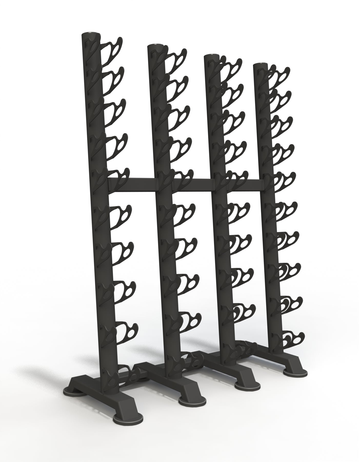 Suport pentru 20 seturi de gantere PTP 566-01 este o construcție metalică formată din patru suporturi fixate pe cadru. Pe rafturi montate se instalează gantere.