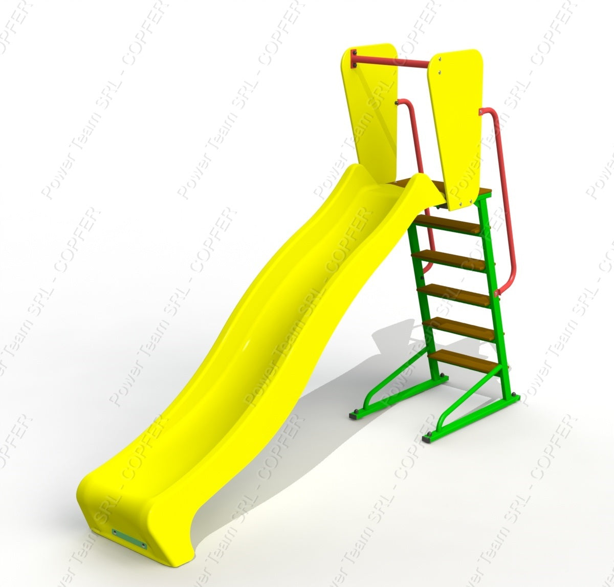 Материалы: Обработанная и покрашенная влагостойкая фанера, покрашенные порошковой краской металлические трубы, пластиковая горка и пластиковые заглушки на все болтовые соединения. (Установка на бетон)