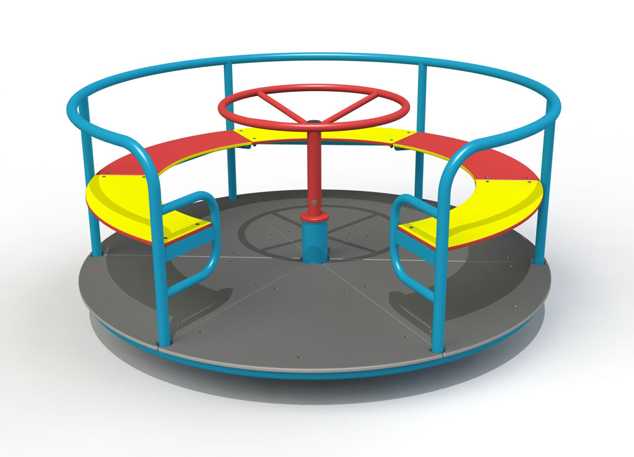 Конструкцию должна быть выполнена из несущей трубы минимальным сечением 89 мм, толщиной металла не менее 9 мм и вращающегося каркаса на оси на радиальных конических подшипниках. Каркас будет изготовлен из трубы диаметром минимум 33 мм, на которой должны быть размещены 5 сидений из HDPE – полиэтилена высокой плотности без токсичных компонентов с многослойной структурой различных цветов, толщиной не менее 15 мм.
