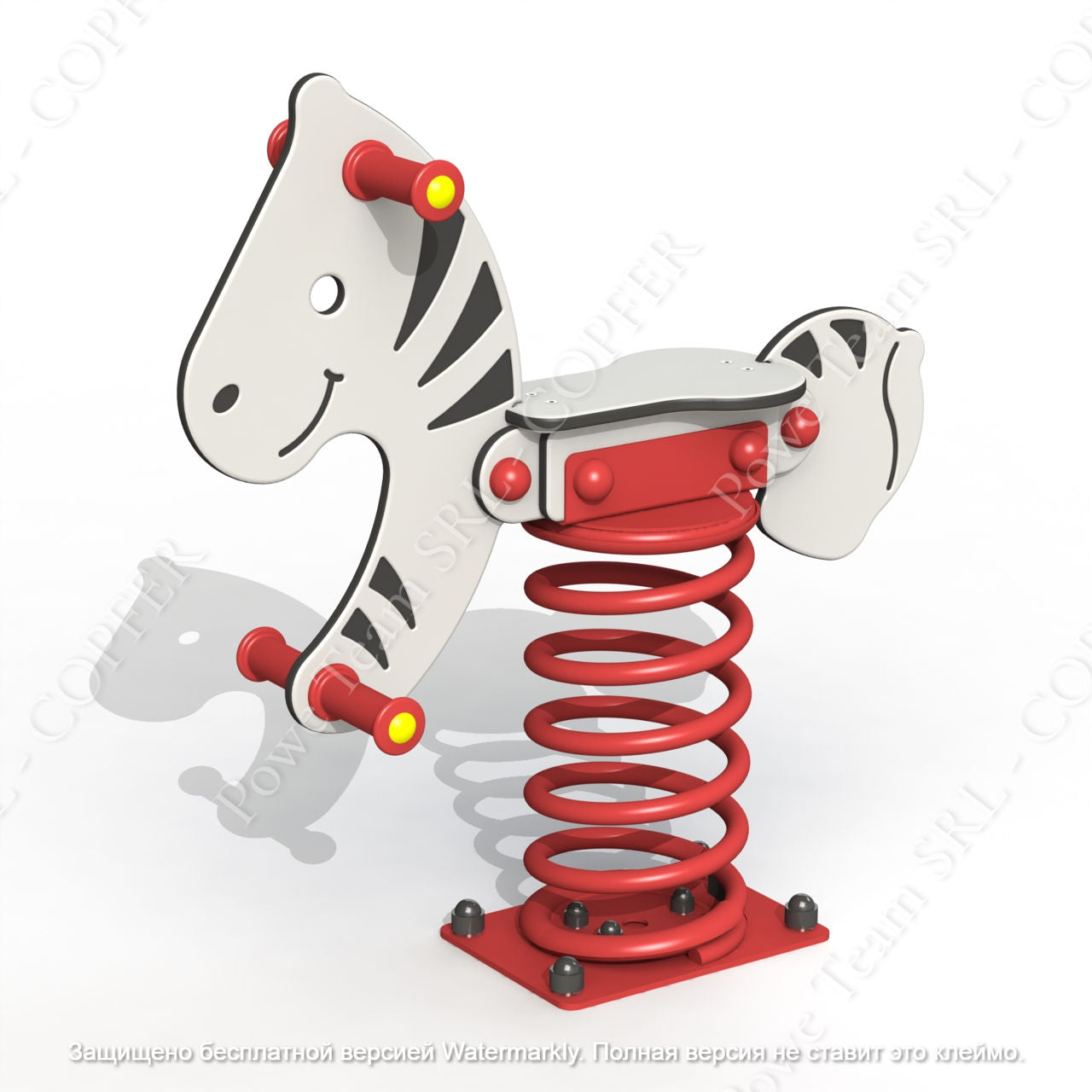 Конструкция должна состоять из нижнего основания, винтовой пружины, качалки в форме зебры, сиденья, поручней, подножек: