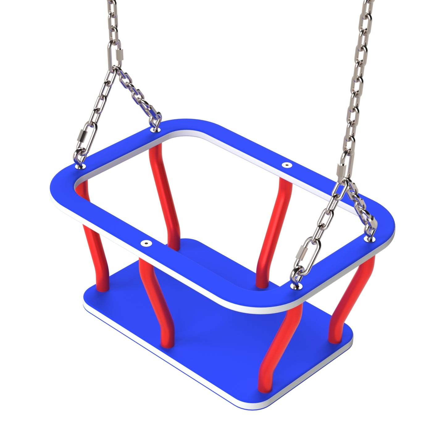 Конструкция должна быть выполнена из стального корпуса, сиденье и защитные бортики из HDPE - полиэтилена высокой плотности без токсичных компонентов с многослойной структурой различных цветов, толщиной не менее 15 мм, цепь из нержавеющей стали.