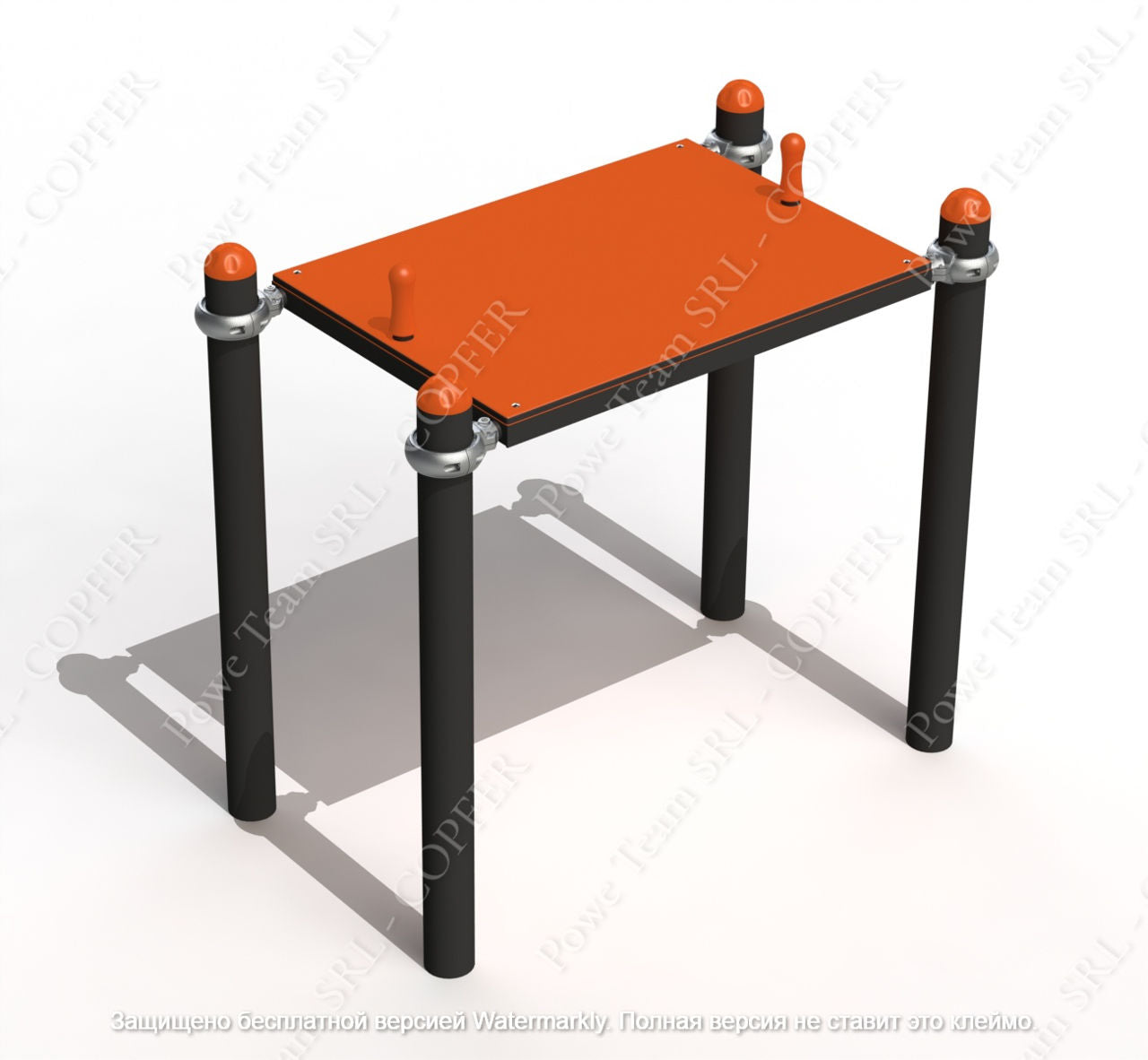 Материалы: HDPE многослойная структура - полиэтилен высокой плотности без токсичных компонентов, покрашенные порошковой краской металлические трубы, пластиковые заглушки на все болтовые соединения.