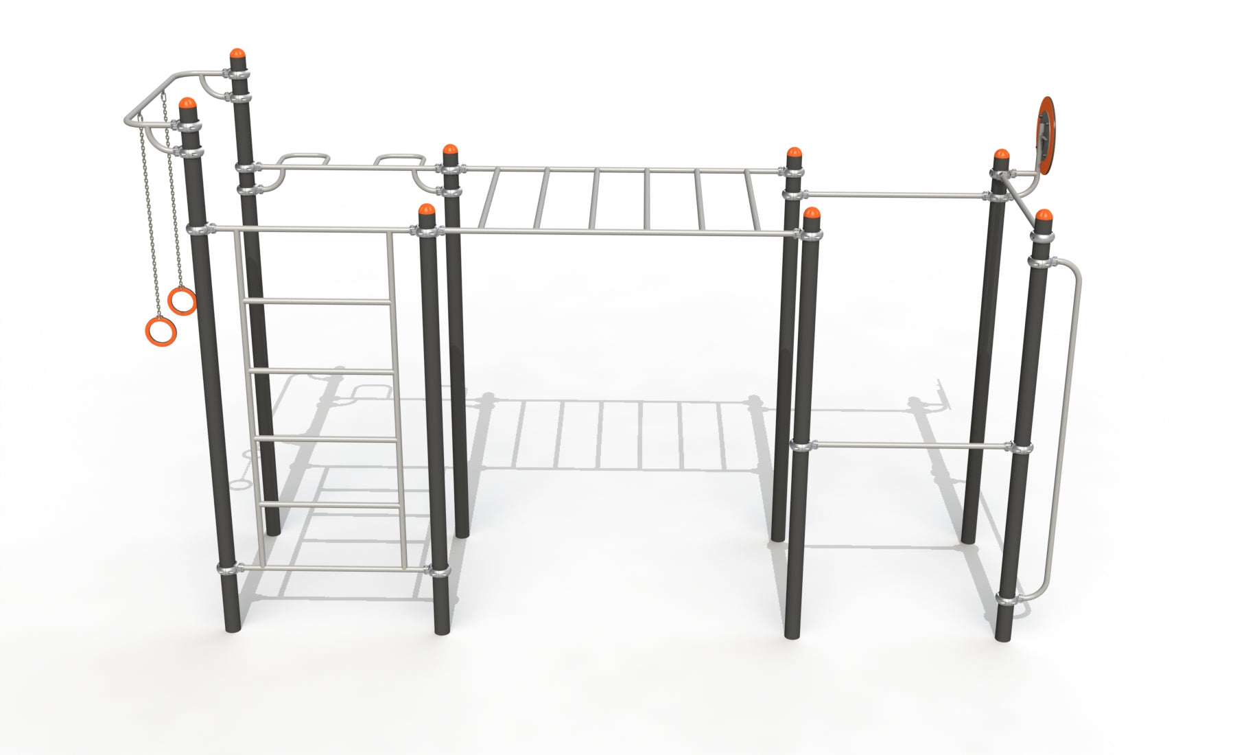 Конструкция будет состоять из восьми опорных столбов, изготовленных из стальных труб диаметром не менее 89 мм и толщиной не менее 3 мм. Перекладины вертикальной гимнастической решетки, брусьев для лазанья, турников разного уровня и зигзагообразных брусьев для лазанья будут изготовлены из труб диаметром не менее 33 мм и толщиной не менее 2,8 мм.